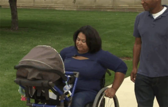 Sharina Jonesová byla v pěti letech postřelená a od té doby žije na invalidním vozíku. Když o třicet let později otěhotněla, byla její největší starost, jak bude vozit miminko v kočárku.