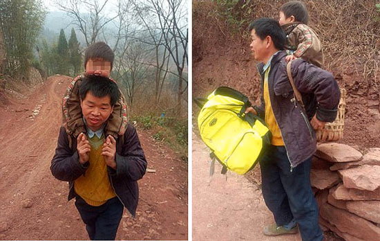 2. Čínský tatínek, který nosí postiženého syna 28 km každý den do školy