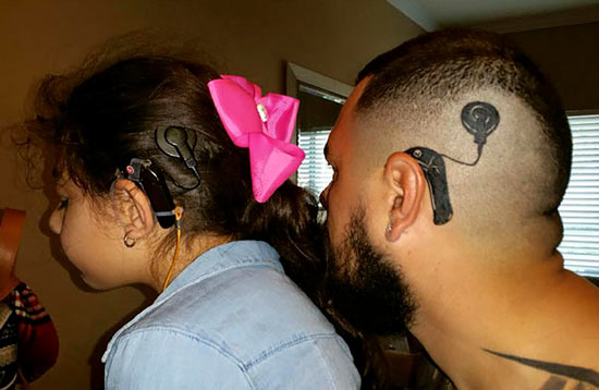 3. Tatínek, který si nechal vytetovat ušní implantát, stejný jako nosí jeho dcera