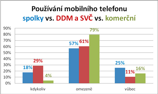 Dříve bylo normální poslat dítě na 14 dní na tábor a vyměnit si s ním jen pár pohledů. Dnes mají rodiče problém nechat dítě na táboře bez mobilu. Podle průzkumu České rady dětí a mládeže jen na pětině táborů děti mobil vůbec nepoužívají, stejný počet je naopak dětem dovoluje bez omezení. Na šedesáti procentech táborů mohou děti mobil používat jen v předem stanovenou dobu.