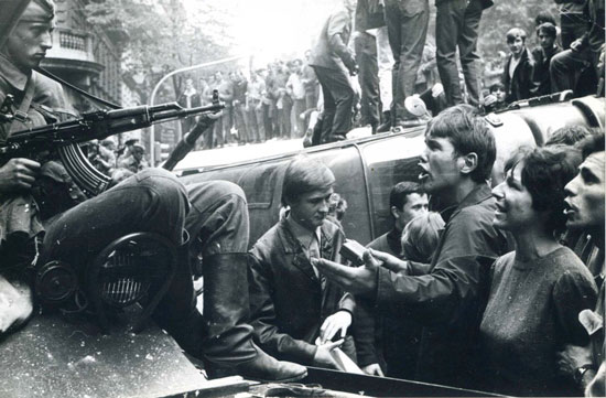 Její kamarád se snažil ji vzít za ruku a odvést ji z téhle situace domů. Ale dívka už byla na barikádách v bojovné náladě a chtěla vysvětlit tomu mladíkovi se zbraní, že tady nemá co dělat; v ulicích tohoto čarovného města, jak to dělaly tisíce občanů její země uprostřed Evropy, snažily se jim vysvětlit, že jsme mírumilovní občané, že se o nás říká, že jsme holubičí povahy.