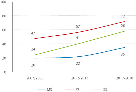 I když se podíl dětí se speciálními vzdělávacími potřebami v mateřských a základních školách časem příliš nemění, jejich absolutní počet se vzhledem k aktuálně silným ročníkům školkových a školních dětí zvyšuje. Za posledních deset let jich bylo výrazně více integrováno do běžných mateřských, základních i středních škol. A mění se také struktura postižení, kvůli kterým děti speciální přístup ve škole potřebují.