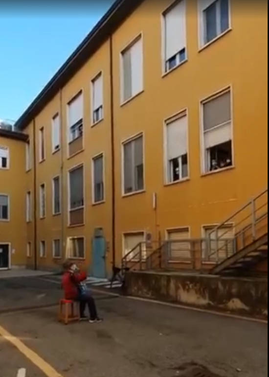 Vzhledem k omezením způsobenými současnou koronavirovou epidemií v Itáli, nemohl Stefano navštívit svoji manželku Carlu, se kterou je 47 let a která je hospitalizována v nemocnici (její nemoc nesouvisí s Covid-19). Aby ji potěšil, sedl si na židli na dvůr v nemocnici a pod jejím oknem zahrál několik oblíbených písní na akordeon.