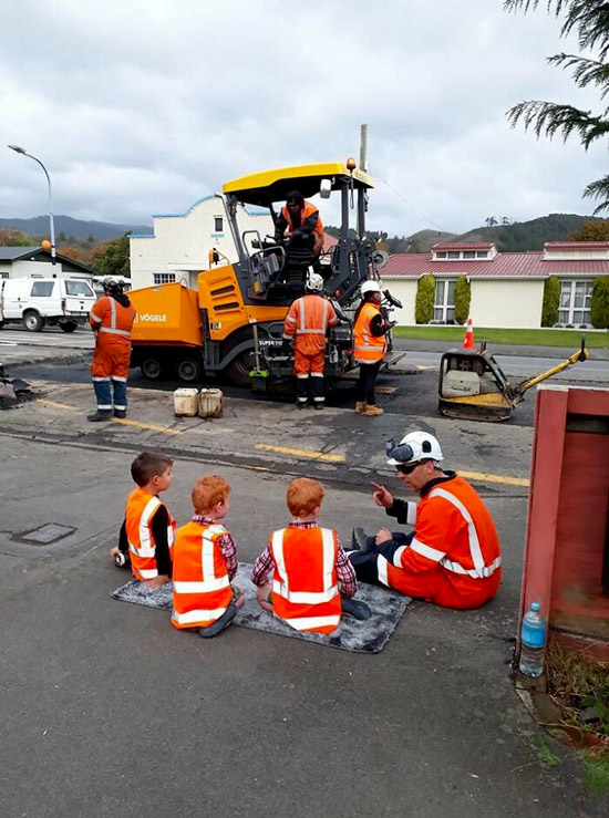 Dělník na stavbě si našel čas, aby vše dětem v sousedství vysvětlil