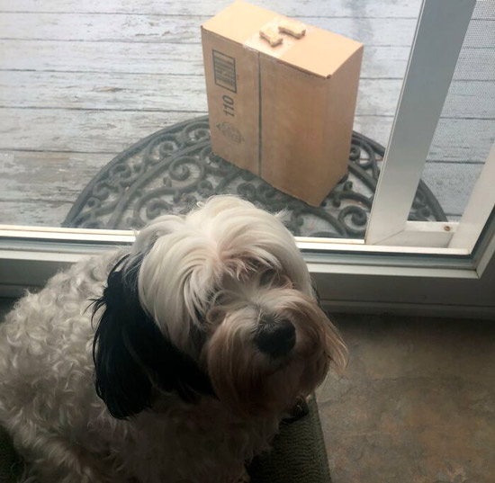 Náš pošťák nechal za dveřmi kromě balíčku i něco na zub pro našeho hlídače