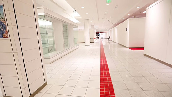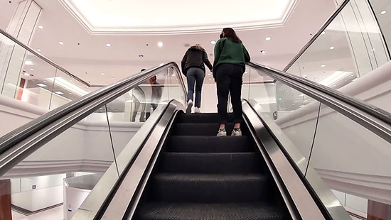 Do školy tak studenti přijíždějí po eskalátoru a procházejí kolem opuštěných obchodů známých značek.