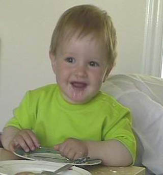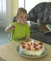 Narozeninový dort se mu zamlouval, hlavně ty jahody, které byly navrchu. Ty ho snad zajímaly více než hořící svíčka. Hned odlepil jednu maxi jahodu a šup s ní do pusy, až měl boule za ušima.