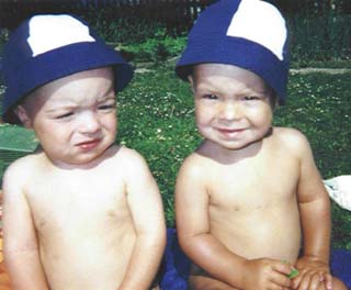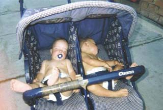 V dubnu se nám „rozpohyboval po vlastní ose“ bez držení Ondrášek a začala ta správná legrace. Nahánění dvou dětí současně po zahradě. A pak jednou pršelo. Nevím, jestli jsem již psala, že babiččin pudl je navýsost inteligentní tvor a v době, kdy my s babičkou jsme si užívaly příjemného dopoledne a kluci „řádili“ po celém bytě, skákal zvenčí na dveře. Tak dlouho, dokud je neotevřel. Určitě znáte dobře pojem „podezřelé ticho“. Ticho v bytě, kde jsou dvě děti, kterých je většinou „plno“, je podezřelé až až. Takže jsem ztuhla, vystartovala, děti nikde…. a vzhledem k tomu, že byly otevřené vchodové dveře, zcela jasnozřivě jsem usoudila, že budou venku. Byli. Oba. Na písku. Punčošky promočené, ale spokojení. Dodnes nevím, jak zvládli schody, protože z nich pořád ještě lezli a dost se báli. Ani to nemělo dlouhého trvání, protože po měsíci začali „brát“ schody statečně. Po dvou. Ach jo. Teď už zase míváme děti rozptýlené po celém domku….
