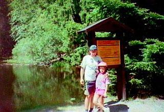 Není také divu, oproti příšerným výstupům v prvních dnech jedeme pořád víceméně podle Vltavy, tudíž dolů. Naším cílem je nejprve Horní Vltavice, kde drobet svačíme, a potom Zátoň. Odsud je už jenom kousínek na malé krásné tábořiště u Boubínského pralesa. Je sice ukrutně zaplněné auty a autobusy, ale klučík, který jej provozuje, nás ujišťuje, že s večerem všichni odjedou a bude klid. Zajíždíme tedy až zcela dozadu na travnatou loučku, kde je opravdu jenom pár stanů. Odkládáme tedy náklad, stavíme stan již docela brzy odpoledne, protože plánujeme výlet do pralesa a potom do Volar do bazénu. Přece jenom… koupání ve studené Vltavě nebylo z hlediska očisty to pravé ořechové. Když se nám podařilo vyfunět až nahoru k jezírku, tati náhle zjistil, že se mu už dál studovat prales nechce. Jednak děti celou dobu pokvikovaly, že tam stejně nic není, protože tam už byly se školou v přírodě, no a hlavně náš tati nemá rád, jak už možná bylo poznat, větší seskupení lidí na menším místě. A tady to vypadá jako na lázeňské kolonádě. Turisté vyvržení z mnoha autobusů v údolíčku berou prales útokem. Proto se trošku kocháme jezírkem a vydáváme se pomaličku zpět.