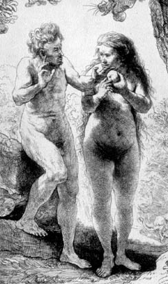 Proto byla maminka na výstavě slavného malíře Rembrandta úplně sama a koupila si tam plakát s grafikou “Adam a Eva v ráji”. Právě se ho chystala doma pověsit na stěnu. Danielek při věšení obrázku maminku bedlivě pozoroval. Od malička zbožňoval změny všeho druhu, řemeslníky, opravy, vrtačky, kladiva, hřebíky, pračku rozebranou do posledního šroubku, vysavač, ano, Danielek miloval dokonce i vysavač, a pokud o něj v předsíni náhodou zakopl, políbil rouru od vysavače, omluvil se jí, a soucitně řekl, “Plomiň, vysači.”