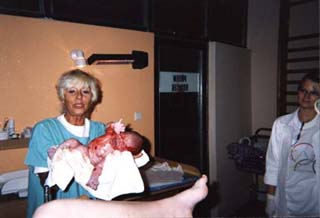 Porod byl úplně báječnej. Samozřejmě jsem měla bolesti a to hned křížové, ale moc mi pomohlo, že byl se mnou po celou dobu David. Statečně masíroval, kdykoliv přišly kontrakce a já hopsala na míči, byla ve sprše, pila kolu, kterou mi porodní asistentka plně doporučila - prý jsou v ní cukry a ty teď budu potřebovat :-) Je pravda, že mi při porodu ležela porodní asistentka na břichu, že mě nastřihli, ale všechno mi bylo jedno, když už jsem jí konečně držela v náručí. Byla jsem šťastná stejně jako David, který si jí mohl taky hned pochovat. Byli jsme všichni tři celé dvě hodiny spolu a potom nás odvezli na nadstandard (naštěstí byl volný) a Terku si vzali k sobě. Měla jsem odpočívat a nabírat síly, ale já nějak nemohla usnout - bylo tolik zážitků...... A tak jsem celou noc nespala.... A pak následovala druhá...... třetí........ Terka plakala hlavně v noci - měla obrácený režim a když přes den spinkala jak andílek, k nám se zase hrnuly návštěvy, takže ze spaní opravdu nic nebylo. K tomu mi ještě vštěpovali, že musím kojit po dvou až třech hodinách (to jsem jí musela i budit), takže jsem vlastně nedělala nic jiného, že jsem chodila do sprchy, nahřívala prsa, myla se, "větrala", kojila, houpala a pořád dokolečka...... A tak se to ve mě hromadilo.