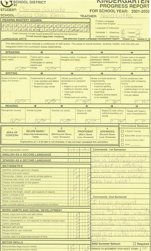 Znám všechny Clarissčiny spolužáky. Nejen podle jména. Vím, jaký kdo z nich je, co umí, jak pracuje a jak se chová. Když se ptám, jaké to bylo ve škole, mohu se ptát konkrétně: Jestli Korey dostal zase žlutou nebo červenou kartu (měnění karet je jako ve fotbale jeden z disciplinárních prostředků), jestli už dokončili knížku o beruškách. Nebo kdo je teď nový v jejich nejlepší čtenářské skupině. Jestli Alexander zase zapomněl svačinu, atd...