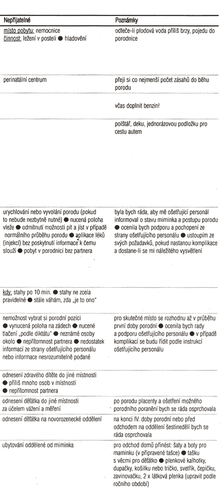 Díky porodnímu plánu se o svých přáních, vztahujících se k porodnímu procesu, mohou dohodnout s porodní asistentkou již při příjmu.