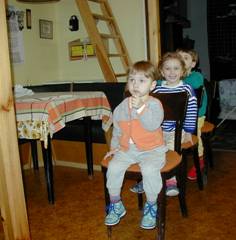 V pondělí jsem nemocné hlasivky děvčat uzdravila natolik, že se úspěšně mohly zúčastnit svého prvního adventního koncertu coby zpěvačky. Pyšně jsem se dmula nad vzorně vykukující hlavičkou Majdy, která jak andílek s pusinkou ve tvaru kroužku zpívala koledy. Terinka zpívala taky nepřetržitě, i když se snažila vyštípat si punčocháče uprostřed "Štědrého večeru", i když spadla z pódia a vracela se zády zpět. Zpívala i mezi koleny, když si zapínala poslední knoflíček šatů, zpívala, i když už ostatní děti skončily. U Majdy jsem ronila slzy rodiče dojatého schopností vlastních dětí (ostatně, jak Vy víte, že to není začátek nové hvězdy operního nebe?), u dcerky druhé mi slzy samy stříkaly z očí, to jak má bránice nedokázala přejít, že má vzorná dcerka právě při koledě rozprostírá celý velký kapesník na svém bříšku, aby se (podle instrukcí matky-nesmrkej do koule, ale do pěkně rozbaleného kapesníku) mohla řádně vysmrkat. Co si přát víc?