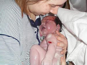 Aniž bych si musela říkat, tak jsem hned dostala naší holčičku do rukou - ale jenom na chvilku. Byla jsem docela chudokrevná, už v poradně mě lékařka upozorňovala, že možná bude nutná transfuze, takže teď jsem se musela přemístit na porodní sál, kde jsem porodila placentu a lékařce se tak lépe hlídalo krvácení. Bylo minimální :o)))