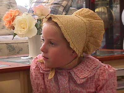 Až do teď ji žádná panenka tolik nezaujala. Kirsten se navíc v mnohém podobá hrdince knížek Laury INGALLS WILDER ze sérií o MALÉM DOMKU V PRÉRII. Patří zřejmě k neoblíbenějším knížkám pro děti (hlavně pro holčičky) v Americe. Byly již mnohokrát zfilmovány (zrovna teď běží nové zpracování na několika kanálech). A tak Clarisska nahodí dlouhé plátěné šatičky a bonnet (klobouček proti slunci) a už je buď Kirsten nebo Laura. Občas se mě zeptá na to či ono (ale sama ví už hodně historických fakt). A vyhraje si celé hodiny. To, že se tím učí i něco z minulosti Ameriky, není jen iluze.