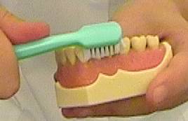 Nasadíme kartáček tak, aby krajní vlákna byla pouze na zubu, ale kopírovala okraj dásně. Pak děláme malinkaté kroužky, skoro na místě. Vlákna nesmí opustit dásňový žlábek. Nejlepší kontrola je náš vlastní jazyk. Čistý zub je totiž hladký!!! Zde bych ráda zdůraznila, že není důležité, jak dlouho si zuby čistíte, ale že jsou na konci čisté, tedy hladké. To trvá každému jinak dlouho.