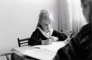 A takhle to vypadalo prakticky: V psaní jsme se delší dobu věnovaly uvolňovacím cvikům, správnému sezení a držení tužky. Vyplatilo se to - na jaře už písanky sklízely bohatou úrodu razítek a jedniček. Čtení jsme zdolávaly jako náročný výstup na horu, na jejímž úpatí bylo nutné rozpoznat písmenka, naučit se slyšet jednotlivé hlásky a umět je spojit do slov. Nebylo to snadné, ale stanoveného cíle jsme dosáhly. Zato v matematice jsme pokračovaly rychleji, než nám osnovy kázaly. Shrnuto: Domácí vzdělávání nám umožnilo postupovat tempem, které vyhovovalo konkrétním schopnostem žáka.