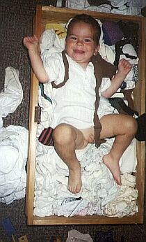 Když má rošťáckou náladu, dovede při koupání vylít kyblíček vody z vany na podlahu koupelny nebo si během hraní v obýváku vyleze na křeslo, z toho dosáhne na vypínač a zapíná a vypíná světlo, což ho kdekoliv velmi fascinuje. Při jízdě výtahem samozřejmě vyžaduje mačkání knoflíků a podobně se chová i u počítače - zkouší tlačítka na klávesnici. U dědy s babičkou pak dostává na hraní starý psací stroj, aby se trochu vyřádil. A co teprve, když si zahraje s dědou čtyřručně na piánu. Dovede už do něj pěkně "tlouct."