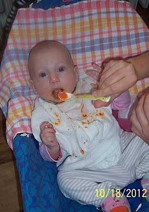 Stačil necelý měsíc a my měli doma úplně normální miminko bez jakýchkoli problémů. Trošku jsem měla strach z příkrmů, ale to Zuzka taky překvapila. Dá se říct, že jedla cokoli bez problémů a s chutí. Musela mít teda všechno našlehané na hladkou kaši. Kousky ji vzhledem k rozštěpu vadily.