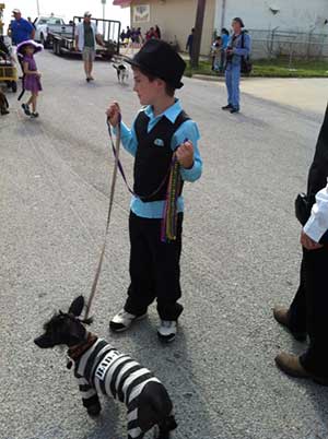 Na mém Facebooku se sešla celá řada fotek z Mardi Gras u nás, z oslav Masopustu v Čechách a z Itálie od pana Slavíka Carnevale...Bylo to moc pěkně. Tak Vám dneska posílám pár fotek z našeho průvodu v Galvestonu, který pořádala naše společnost, která nese jméno volně přeložené Štěk a Mňouk (Krewe of Barkus and Meoux) a téma průvodu bylo Velký Catsby (jako Gatsby) a divoká dvacátá léta...