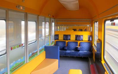 Kupé obsahuje 6 míst k sezení=rezervaci (modré plyšové sedačky, na každé straně 3). V kupé jsou dále malé kožené kostičky, na které si mohou děti sednout a sledovat oblíbené dětské pořady na TV. Samozřejmostí jsou hračky pro děti pro příjemnější cestu.