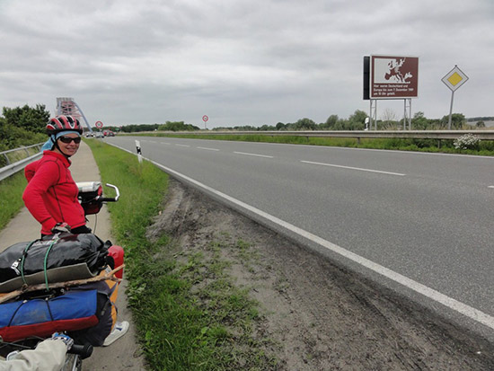 Před Dömitzem nás ohromná cedule informuje o tom, že přejíždíme z bývalého západního Německa do východního. Tuto hranici budeme překonávat ještě několikrát, než definitivně zakotvíme ve východní NDR. Dlužno říci, že lidi nás v bývalé NSR velice příjemně překvapili, jak svojí srdečností a ochotou, tak i poměrně dobrou znalostí angličtiny. Rozdíl mezi bývalým západem a východem je i více než dvacet let po znovusjednocení stále znát.