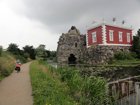 Nebe se zase mračí, chvílemi kape - to už tu dlouho nebylo! Celý den se pak potkáváme s následky ničivých povodní - skoro všude se ale už pilně pracuje na obnově. Navečer vjíždíme do sympatického městečka Dessau, kde po chvíli tápání nalézáme McDonald. Ne že bychom tolik milovali hamburgery, ale je to v Německu snad jediný podnik, kde je jistota internetu - a my musíme zase chvilku pracovat, tak si tu holt dáme véču. Na prohlídku města pak opět mnoho času nezbývá - rychle do přírody hledat nocleh. Bohužel, kousek za městem se dostáváme opět do stejného problému jako den předtím. Všude jsou kaluže nebo je půda šíleně podmáčená a hlavně, při zastavení se na nás slétávají komáří hejna. Navíc odhadem podle mapy se situace v nejbližší době jen tak nezlepší. Nocujeme nakonec na "verandě" jakéhosi miniaturního zámečku postaveného v lesích s výhledem na řeku. Zde na betonu je komárů nejméně. Ale i to znamená, že po postavení stanu do něho rychle prcháme. Později, když podobných staveb v lese míjíme víc, se dozvídáme, že je vše součástí anglické zahrady, nazvané Dessau-Wörlitz Garden Realm, jedné z největších a nejstarších v Evropě. Nám to připomnělo romantický Lednicko-Valtický areál.