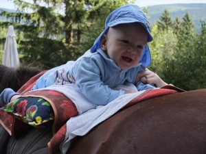 Hipoterapie je fyzioterapeutická metoda využívající trojrozměrný pohyb koňského hřbetu, na kterém může balancovat už dvouměsíční miminko.