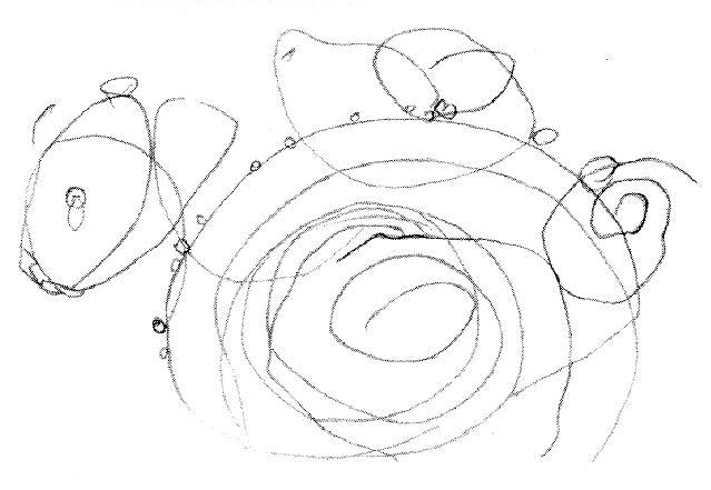 Čáranice – „voják“ (2; 1). Čáranici, v níž převažuje tvar spirály, byl dodatečně přiřknut věcný význam. Snad se k tomu dítě dalo inspirovat drobnými ovály na obvodu silné dlouhé čáry – mohou připomenout knoflíky uniformy.