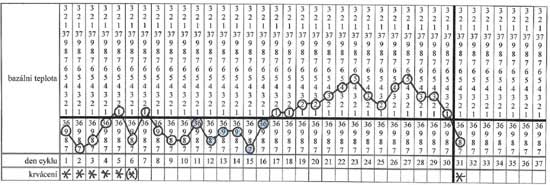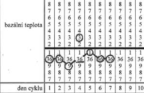 Pravidlo třetího dne vyšších teplot: od večera třetího dne luteální fáze je žena neplodná až do nástupu menstruace.