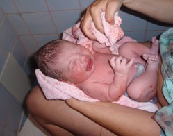 Pokud dítě po porodu nezačne křičet, musí se dát opatrně do polohy hlavou dolů, aby mu z úst vytekla plodová voda. Pokud ani po tom nezačne křičet, je nutné mu plodovou vodu z úst vytřít čistým papírovým kapesníkem.