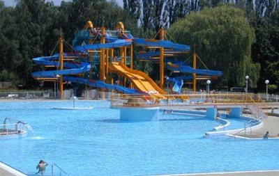 | Popis: | K dispozici je 3500m² vodní plochy s recirkulací. K tomu rekreační bazén se skokanskými prkny, bazén pro plavce 50m, dojezdový bazén pro vodní atrakce, dvojskluzavku 25m, 2 tobogány 105m (startovací zařízení a měření času), vířivky, hydromasážní vany, masážní stěny, divokou řeku, dětský bazén s hříbky a vodními deštníky, dětský vodopád 12m a brouzdaliště s malými skluzavkami. Z doplňkových služeb lze využít minigolfové hřiště s 18 drahami, hřiště na plážový volejbal, ruské kuželky, stolní tenis a dětské hřiště s pískovištěm. Můžete využít i kemp, který příjemně navazuje na areál koupaliště, nabízí ubytovací místa pro stany, karavany, obytná vozidla, ubytování v chatkách. |